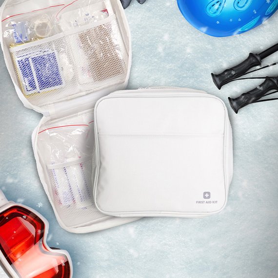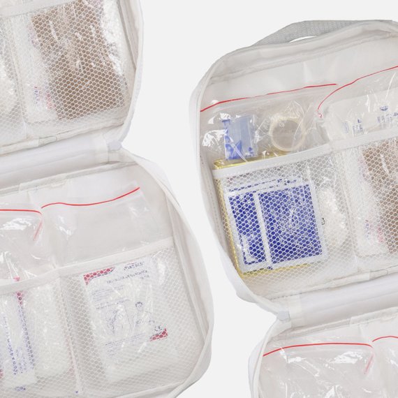 Vahingon sattuessa on tärkeää saada apua nopeasti. Laukku sisältää puhdistusliinoja, kuituteippiä, CPR-suojan, kertakäyttökäsineet, 160 x 210 cm hätäpeitteen, kangas- ja muovilaastareita, erilaisia harsotaitoksia, haavasiteen, PBT-siteitä, pikakylmäpakkauksen, kolmioliinan sekä ensiapuohjeet. Laukun mitat 24 x 21,5 x 5 cm.