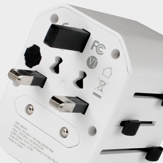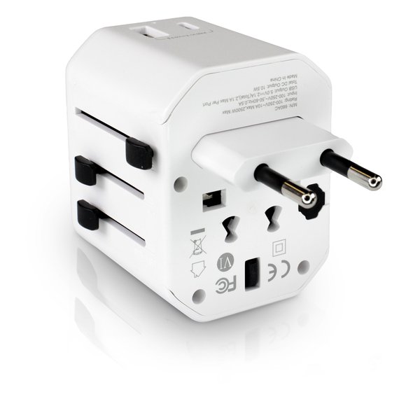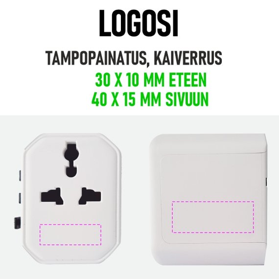 Nauti matkoistasi vaivattomasti matka-adapterin ja USB-laturin yhdistelmän ansiosta. Adapterissa US/AU/UK/EU-pistokkeet, USB-A- ja USB-C-portit. Kokonaisteho 10,5 W. Soveltuu käytettäväksi 0°C - 40°C lämpötiloissa. Mitat 65 x 55 x 55 mm. Viimeistele tuote logomerkkauksella tuotteen sivulle.