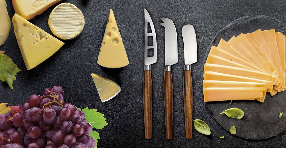Pehmeän juuston veitsi, 25 cm – Terän paksuus 1,5 mm. Terässä olevat reiät estävät pehmeitä juustoja tarttumasta veitsen pintaan. Ihanteellinen juustoille kuten Brie, Camembert ja tuore Mozzarella.