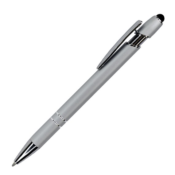 Tyylikäs ja monikäyttöinen kosketusnäyttökynä, jossa yhdistyvät perinteisen kuulakärkikynän käytännöllisyys ja moderni kosketusominaisuus. Kynässä on kestävä alumiinirunko ja kätevä klipsi, joka pitää sen helposti mukana. Musta kuminen kosketusnäyttöpää toimii sujuvasti kaikilla kosketusnäytöillä, ja 1 mm kuulakärki tuottaa tasaisen sinisen mustejäljen. Paino: 18 g. Koko: 145 × 10 × 15 mm.