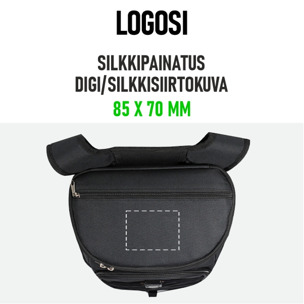 Repun varusteluun kuuluu vetoketjullinen päälokero, pieni vetoketjutasku yläosassa sekä vetoketjullinen etutasku, jossa on lisäksi joustonyöri ja muovisolki. Verkkomateriaalista valmistetut sivutaskut sopivat mm. juomapullolle tai sateenvarjolle. Säädettävät olkahihnat ja kantokahva tekevät repusta mukavan ja helpon kuljettaa.