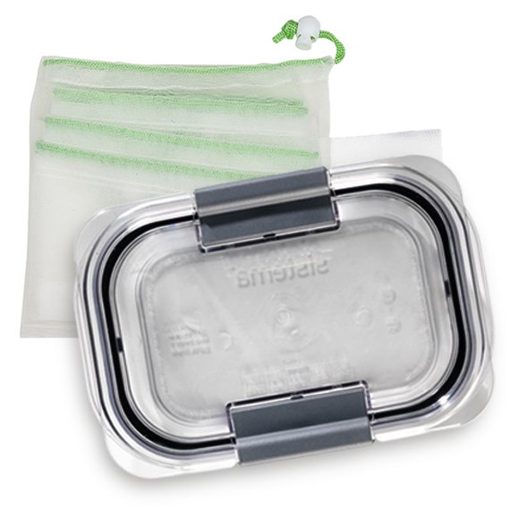 Käytännöllinen lahjasetti sisältää vuotamattoman Sistema-eväsrasian sekä 4 kpl kestopussisetin. Pussin pakataan eväsrasian sisälle.