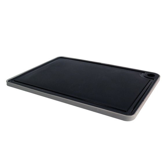Silikonireunoilla varustettu pysyy tukevasti paikallaan leikatessa. Tukeva ja jämäkkä leikkuulauttaa sopii niin lihan, kalan, kasvisten kuin muidenkin herkkujen leikkuualustaksi. Koko 35 x 25 x 1 cm.