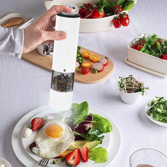 Paristoilla toimiva elektroninen maustemylly pippurille ja suolalle. Myllyssä on kestävä keraaminen koneisto, ja pohjassa oleva valo valaisee käytön aikana. Läpinäkyvän osion ansiosta myllyn sisällön näkee helposti. Mausteiden karkeus on säädettävissä. Tuote sisältää paristot (6 x AAA). Mitat 18,5 x 5 cm.