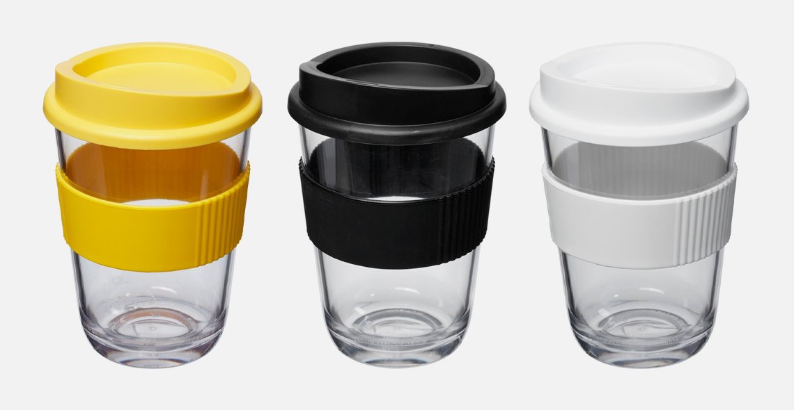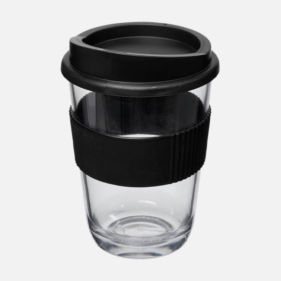 Take-away muki roiskumattomalla kannella ja silikonisella oterenkaalla. Kirkas muki on tyylikäs, mutta kestävä. Se on konepestävä ja mikroaaltouunin kestävä, joten et tarvitse erillistä astiaa esimerkiksi kaakaon lämmittämiseen. Tilavuus 300 ml, korkeus 12,4 cm, halkaisija 8,6 cm ja paino 109 g. Valmistettu SAN- ja PE muoveista ja silikonista. BPA-vapaa. Hinta sisältää yksiväripainatuksen. Toimitusaika n. 3 viikkoa.