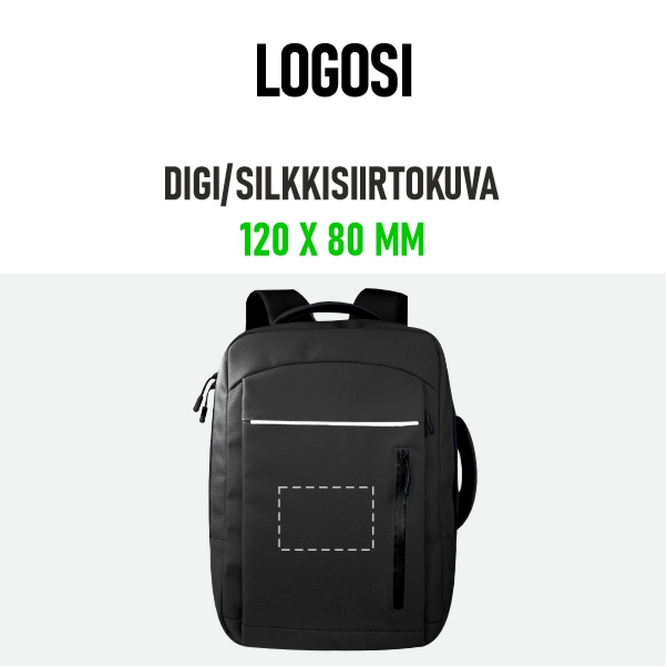 Boston-reppu on valmistettu kestävästä 600D-gucci-materiaalista ja vuorattu 210D polyesterillä. Repussa on yksi päätasku, jossa on kaksi vetoketjua, läppäritasku sekä kaksi pientä sisätaskua. Etupuolella on pystysuuntainen vetoketjutasku ja sivulla toinen pystysuuntainen tasku, jonka etupuolella kulkee heijastava vaakasuora raita. Repussa on ylä- ja sivukahva, säädettävät olkahihnat sekä takahihna, jonka avulla repun voi helposti kiinnittää matkalaukun vetokahvaan. Mitat: 30 x 42 x 14 cm.