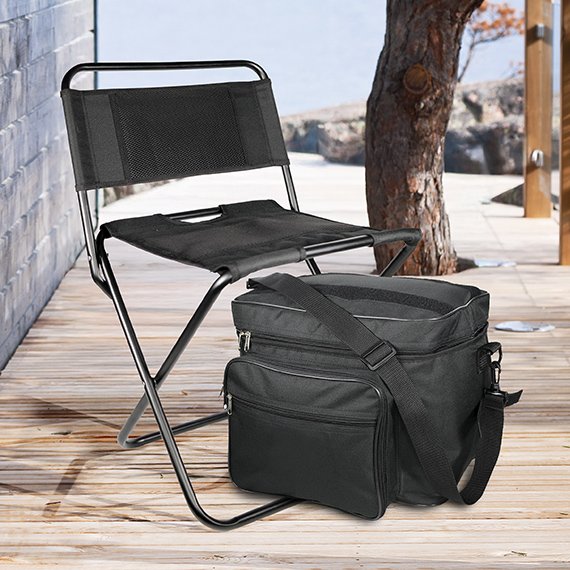 20 litran kylmälaukku pitää juomat ja eväät viileinä. Kylmälaukun mitat 36 x 28 x 24 cm. Tuolin mitat avattuna 44 x 35 x 63 cm.