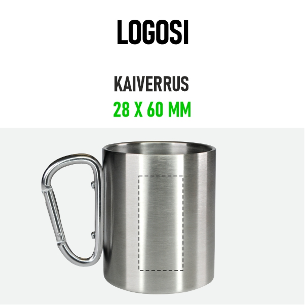 Kätevä teräsmuki, jonka voit kiinnittää rinkkaan tai vyötärölle klipsin avulla. Kaksikerroksinen rakenne pitää juomasi lämpimänä tai viileänä pidempään. Tilavuus: 300 ml. Halkaisija: 7,6 cm, korkeus: 8,8 cm. Ei konepesun kestävä.