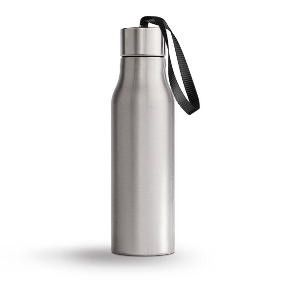 Ruostumattomasta teräksestä valmistettu termospullo kulkee helposti mukana kantolenkin avulla. Tuplaseinärakenteensa avulla pullo pitää lämpimät juomat lämpimänä ja kylmät kylminä. Mustan kantolenkin avulla pullo on helppo kantaa ranteen ympärillä tai laittaa kuntopyörän tangolle roikkumaan.